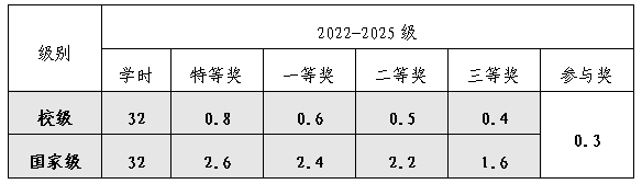 3.活动认证:对于参与或获奖同学,按规定分别给予素质拓展学分认证,认证纳入B类别即专业技能与职业导航。以下各项分值只计最高分,不重复计算。