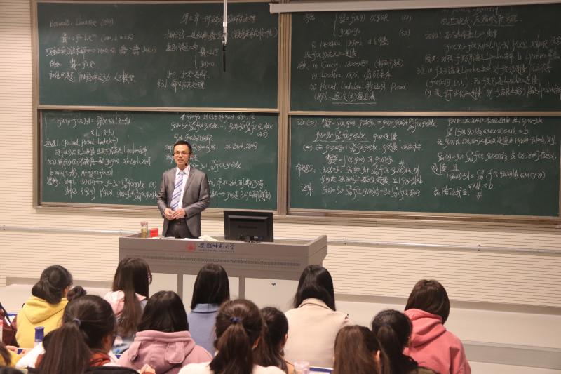 黄守军教授通过带领学生回顾一类一阶微分方程可用初等积分求解的充要条件并结合自由落体运动及人口模型等实际问题引入,在介绍初值问题研究的五个历史阶段的基础上,对教学重点内容Lipschitz连续进行界定并分步证明。授课过程中,黄守军教授精神饱满、声音洪亮、语言准确、推理严谨、详略得当,课堂教学组织井然有序,学生的学习兴趣和求知欲被有效调动。