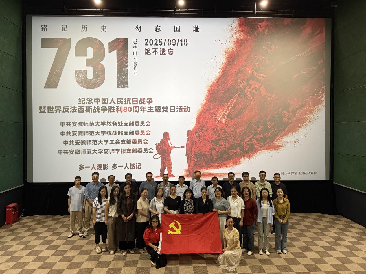 为纪念中国人民抗日战争暨世界反法西斯战争胜利80周年,进一步深化爱国主义教育内涵,引导党员干部从历史中汲取精神力量、厚植家国情怀,10月11日,本科生院、统战部、工会和高师学报党支部组织开展爱国主义教育主题党日活动,集中观看影片《731》,以沉浸式观影体验锤炼党员党性修养,筑牢理想信念根基,推动爱国主义教育走深走实。