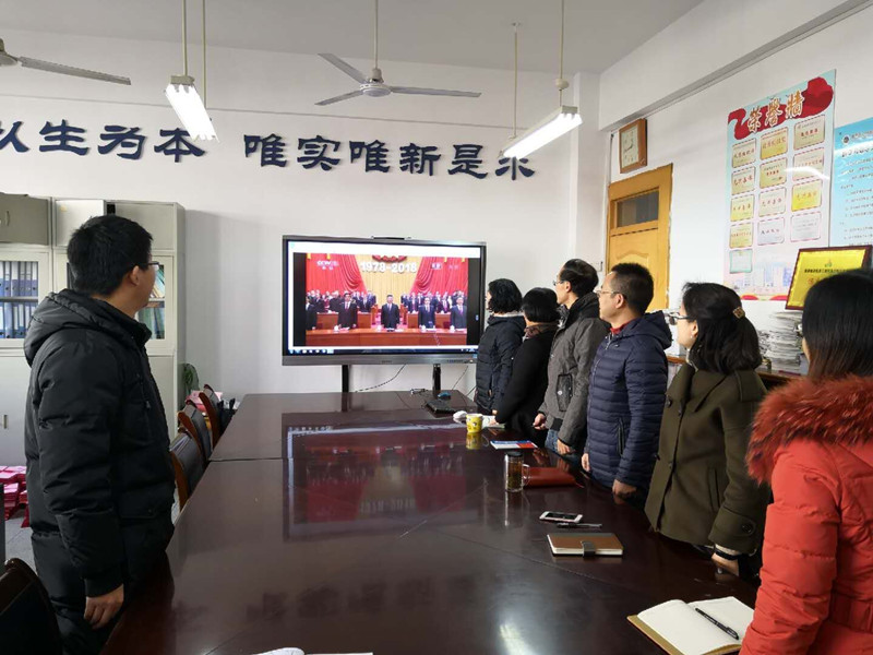 12月18日上午,庆祝改革开放40周年大会在北京人民大会堂隆重举行。教务处党支部成员在党员活动室集体收听收看大会现场直播,聆听习近平总书记发表重要讲话。