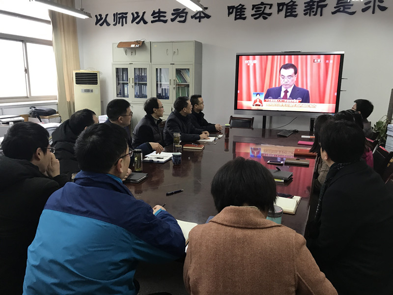 新时代新使命新征程。3月5日上午,在共襄国是、共谋伟业的“两会时刻,教务处党支部在党员活动室集中观看了第十三届全国人民代表大会第二次会议开幕式,认真聆听了李克强总理的政府工作报告。
