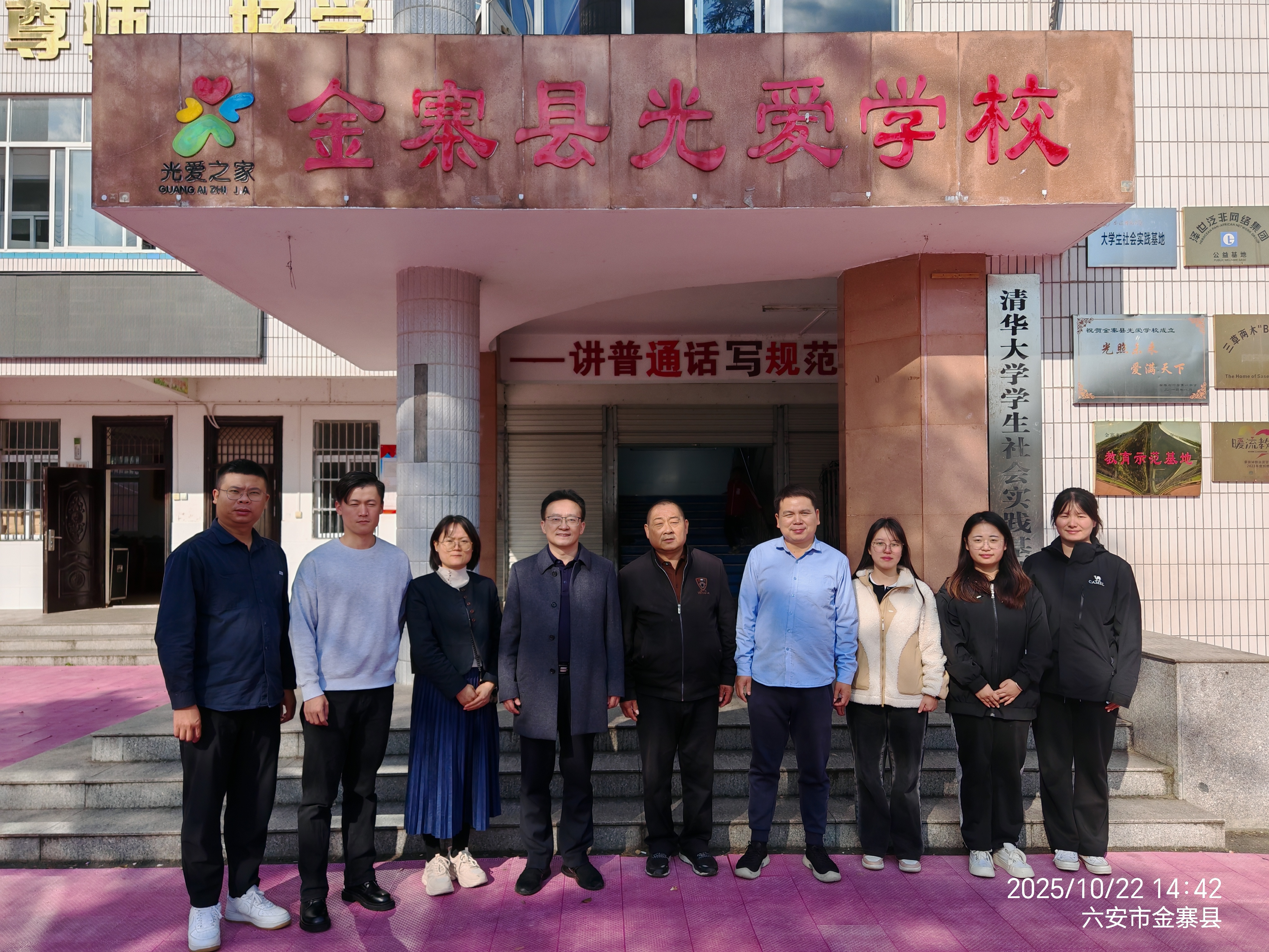 为持续推进教育部体育美育浸润行动计划,助力学生全面发展,10月22日,由美术学院党委副书记李进带队,音乐学院教学院长程炳杰、体育学院教师刘超、本科生院学籍学位科科长袁素文、美术学院辅导员王伟等一行人员,分别前往金寨县光爱学校和宿松县光荣小学,开展2025年度浸润行动计划的具体实施工作,并亲切慰问实习生。