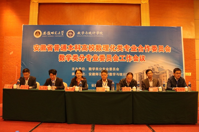 本网讯(数学与统计学院)金秋十月,丹桂飘香。10月13日至14日,安徽省普通本科高校数理化类专业合作委员会数学类分专业委员会工作会议在我校召开。来自安徽大学、安徽师范大学等23所省属院校和独立学院的70余位代表参加了此次会议。校党委常委、副校长陆林,教务处处长周端明,数学与统计学院领导班子等出席了开幕式。大会开幕式由数理化类专业合作委员会主任委员兼数学类分专业委员会主任委员、安徽师范大学教授委员会主任祝东进主持。