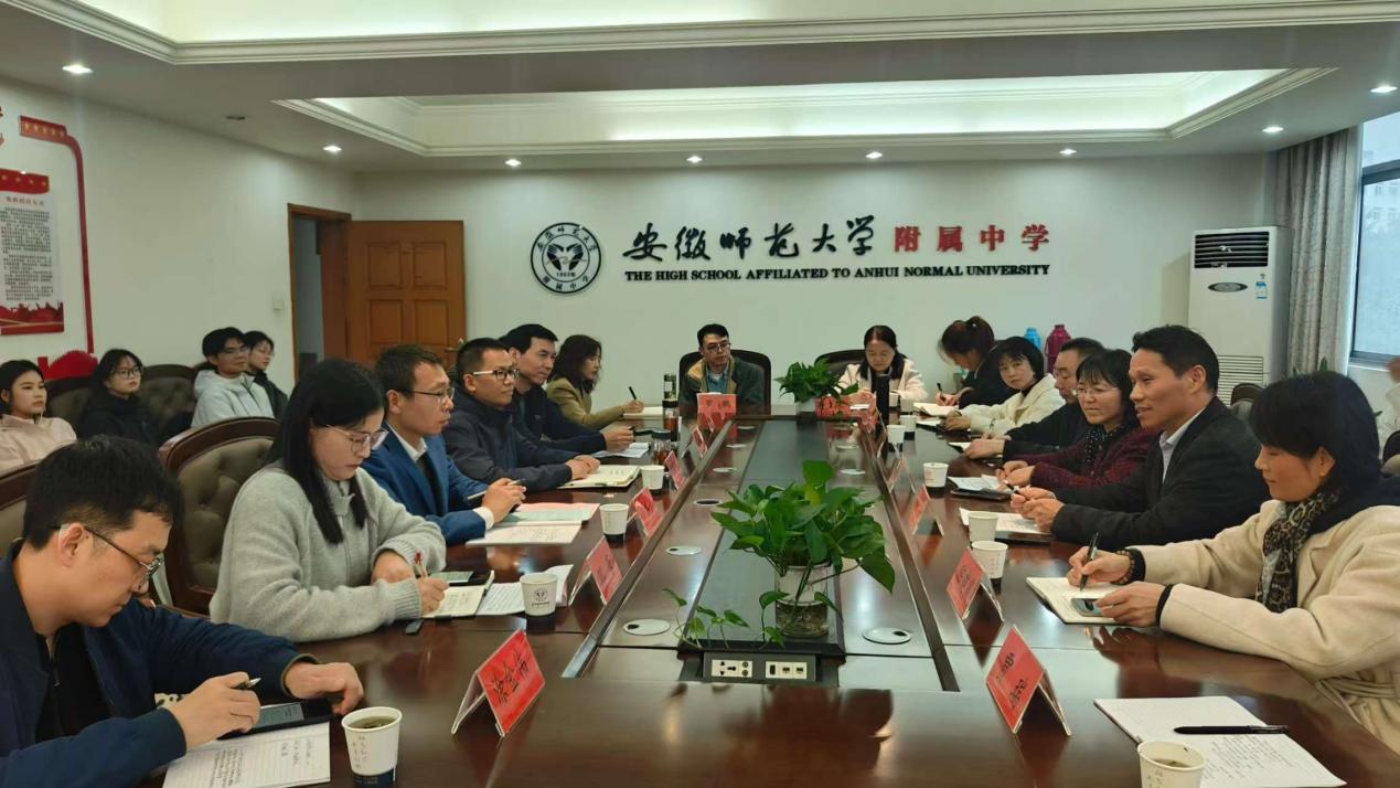 为扎实推进学校基础教育振兴行动计划,规范教育实习管理,强化与实习基地的协同联动,全面了解实习学校反馈,11月7日下午,本科生院协同校本科教学督导团、体育学院、音乐学院、外国语学院赴安徽师范大学附属中学召开教育实习调研座谈会。安徽师范大学(下称安师大)本科生院副院长赵冬梅、外国语学院副书记章珊珊、校督导团卢玉教授、各学院专业负责人及指导教师代表,附中副校长叶国平、教务处副主任卢先立及各相关学科教研组长、实习指导老师,安师大实习生代表参加会议。会议由卢先立主持。