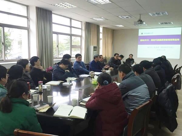 3月20日下午,教务处特邀安徽省2035教育规划专家、教育科学学院教授阮成武做了“面向2035:新时代高等教育政策走向”的主题报告,校党委常委、副校长朱家存,各学院教学院长以及教务处、发规处等部门有关人员聆听了报告,报告会由教务处处长周端明主持。