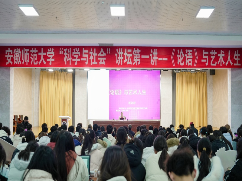 12月24日,“科学与社会”讲坛第一讲开启,安徽省教学名师、博士生导师刘运好教授应邀以“《论语》与艺术人生”为题,带领师生走进儒家经典,探寻智慧与艺术的人生之路。本科生院院长崔光磊等相关部门负责人及我校600余名师生代表参加活动。