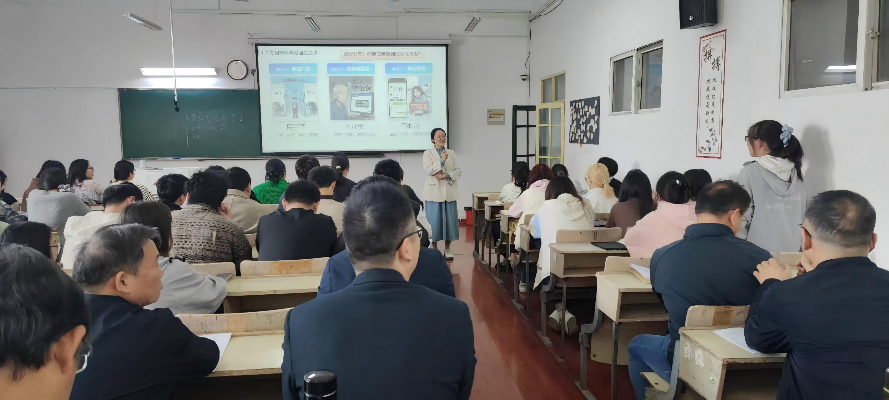 本次讲课的内容是“政务信息资源管理概述”,从政务信息资源的内涵、管理的必要性以及管理路径三个层面进行系统讲解。在阐释政务信息资源的定义时,纪媛媛带领同学们回顾了“电子政务的总体框架”,以“给孩子办户口”的案例导入本节课内容,并借助雨课堂弹幕收集同学们的认知与看法,在此基础上归纳出政务信息资源的五种类型,还通过判断题帮助大家深化理解。针对为何要开展政务信息资源管理这一问题,课堂以“用不了、不好用、不敢用”为切入点,组织同学们分组探讨背后成因,纪媛媛随后从技术、管理、安全三个维度进行了梳理与分析。在政务信息资源管理实践路径上,课程聚焦采集、处理、存储、共享、利用五大关键环节,通过全流程优化,推动政务服务从“跑断腿”到“手机办”,实现了“用得了、用得好、用得安”,让信息为人民服务。课程最后,纪媛媛对本次授课内容进行了全面总结。