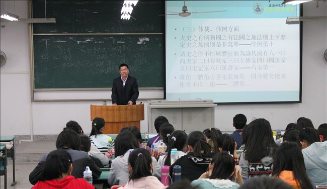 课上,徐彬教授从唐代前代正史和“五代史志”的编修入手,继而介绍了唐修《晋书》的编纂经过、主要内容及其特点和李延寿所撰《南史》、《北史》的基本情况。随后,徐教授从主要内容、史学批评理论、“史才三长”论等三个方面讲解了中国第一部系统的史学评论专著——《史通》。