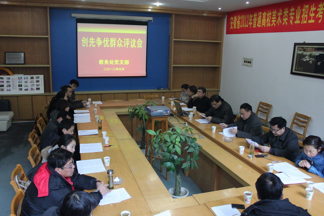 1月12日上午,教务处党支部在赭山校区图书馆会议室召开创先争优群众评议会,校党委常委、副校长李进华、教务处党支部党员和群众代表、学院代表、结对共建单位代表等共计20多人参加了会议。会议由支部书记马广见主持。