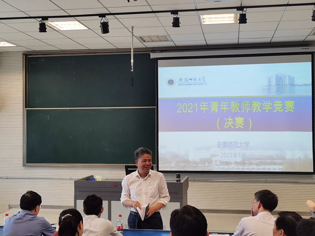 本网讯 (教务处 李进 陈琪)5月29日,我校2021年青年教师教学竞赛决赛在花津校区7号教学楼举行。校党委常委、副校长陆林,教务处、人事处、校工会负责同志出席大赛,来自20个单位的67位青年教师参加了决赛,全校青年教师通过网络直播在线观摩了比赛。