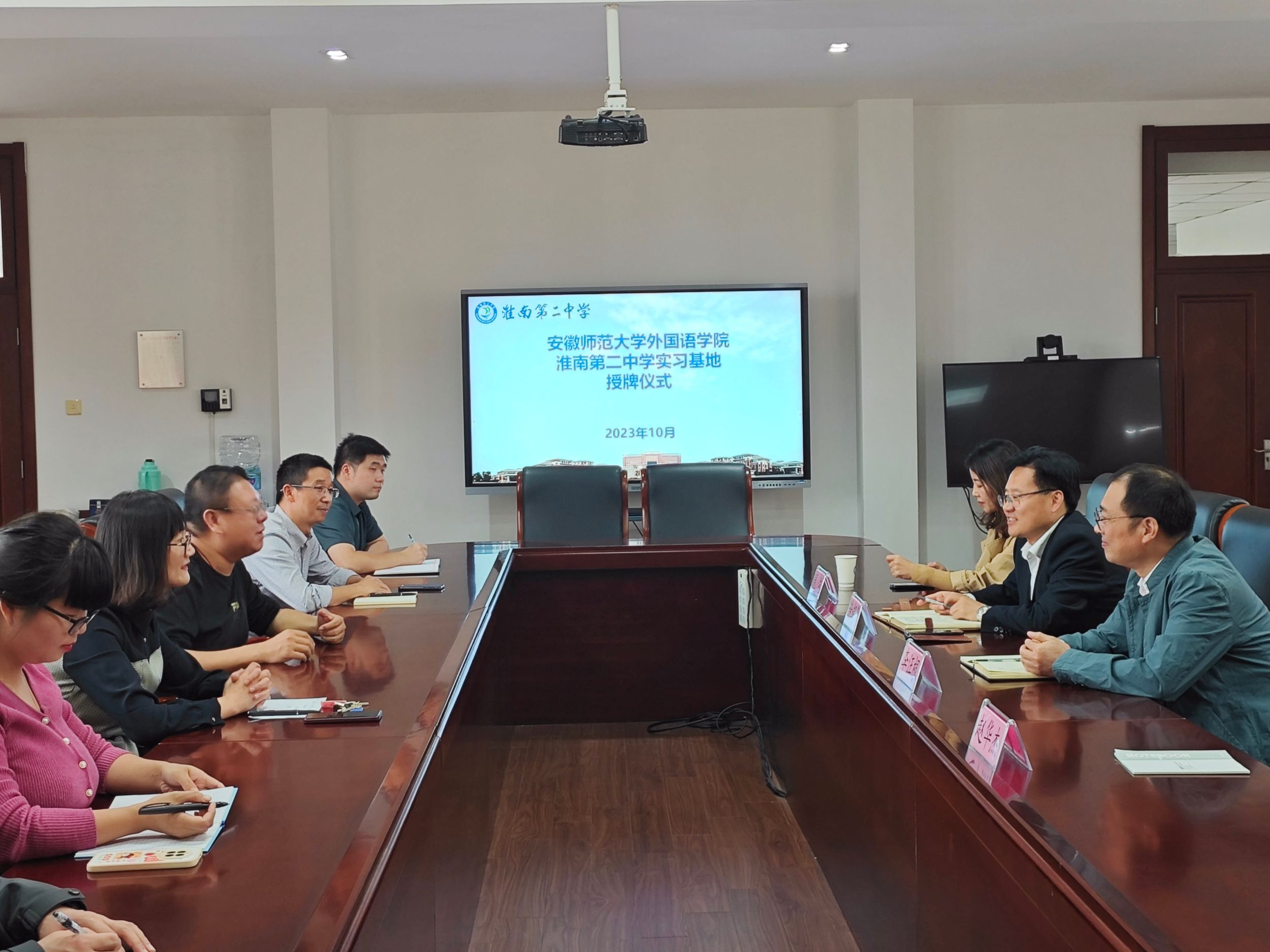 10月12日-13日,院党委书记谢超峰、学校教务处副处长李汪根、英语系教师周艳一行前往淮南二中、蚌埠二中等地,开展教育实习检查,看望慰问实习学生,并与实习学校签约授牌。
