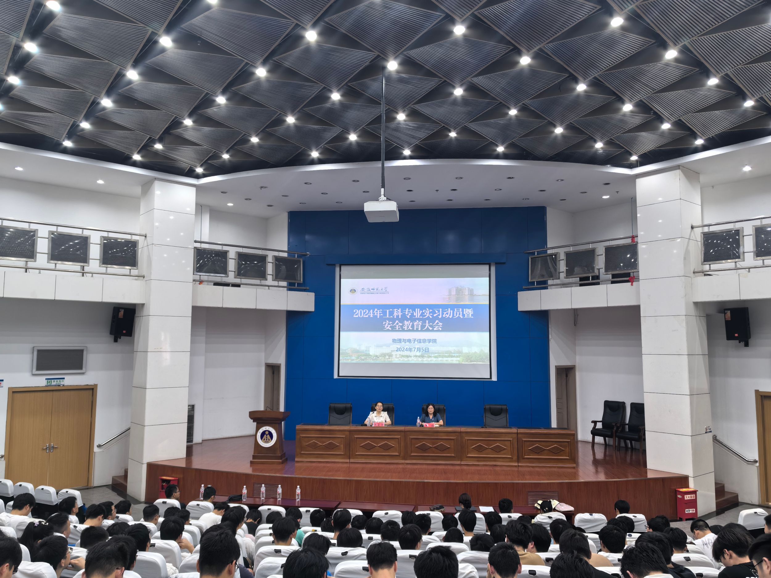 为进一步巩固理论知识,提升学生专业技能,深化知行合一理念,拉近学生职业技能与企业人才需求的“最后一公里”,结合人才培养的需求,物电学院组织三百余名本科生开展2024年工科专业实习。7月5日下午,2024年工科专业实习动员暨安全教育大会在敬文报告厅举行,院党委书记李娟、各专业实习工作指导老师、参加实习工作的工科专业辅导员老师以及全体实习学生参加此次会议,会议由教学副院长张爱清主持。